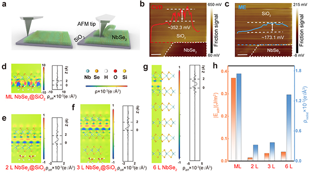 图2 实验与理论分析单层NbSe2实现超低摩擦与超耐磨的机制