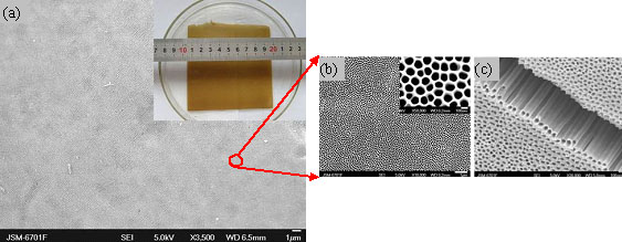 二氧化钛作为一种性能优异的无机功能材料,在光电催化剂、染料敏化太阳能电池、自清洁、光解水等领域获得广泛研究,并取得巨大的进展。近年来发展的一种以阳极氧化的方法制备高度有序的TiO2纳米管阵列更成为国内外材料研究领域的热点。然而,如何能够快速有效的制备高质量的有序二氧化钛纳米管阵列,以及如何进一步提高这种材料性能仍然是这个领域中的突出难点,相关报道目前很少。最近,兰州化学物理研究所固体润滑国家重点实验室周峰研究员领导的研究小组在这一领域取得突破,成功制备了高度有序的多孔型二氧化钛纳米管阵列材料,并实现了二氧化钛纳米管阵列的可控生长,其管径可控范围为20-250纳米,管长为150nm-500um,这些材料已经在光催化、染料敏化太阳能电池、超疏水等领域展现十分优异的性能。相关研究成果被国际著名期刊《JPhyChem-C》、《AdvMater》、《AdvFuncMater》、《ChemMater》等杂志发表或接收,并申请专利一项。该方法制备工艺简单,原料易得,制备成本较低,有望在实际生产中得到应用推广。